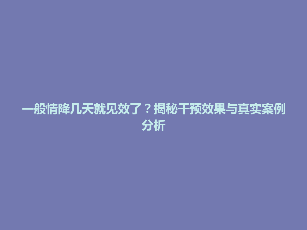 牡丹区一般情降几天就见效了?揭秘干预效果与真实案例分析
